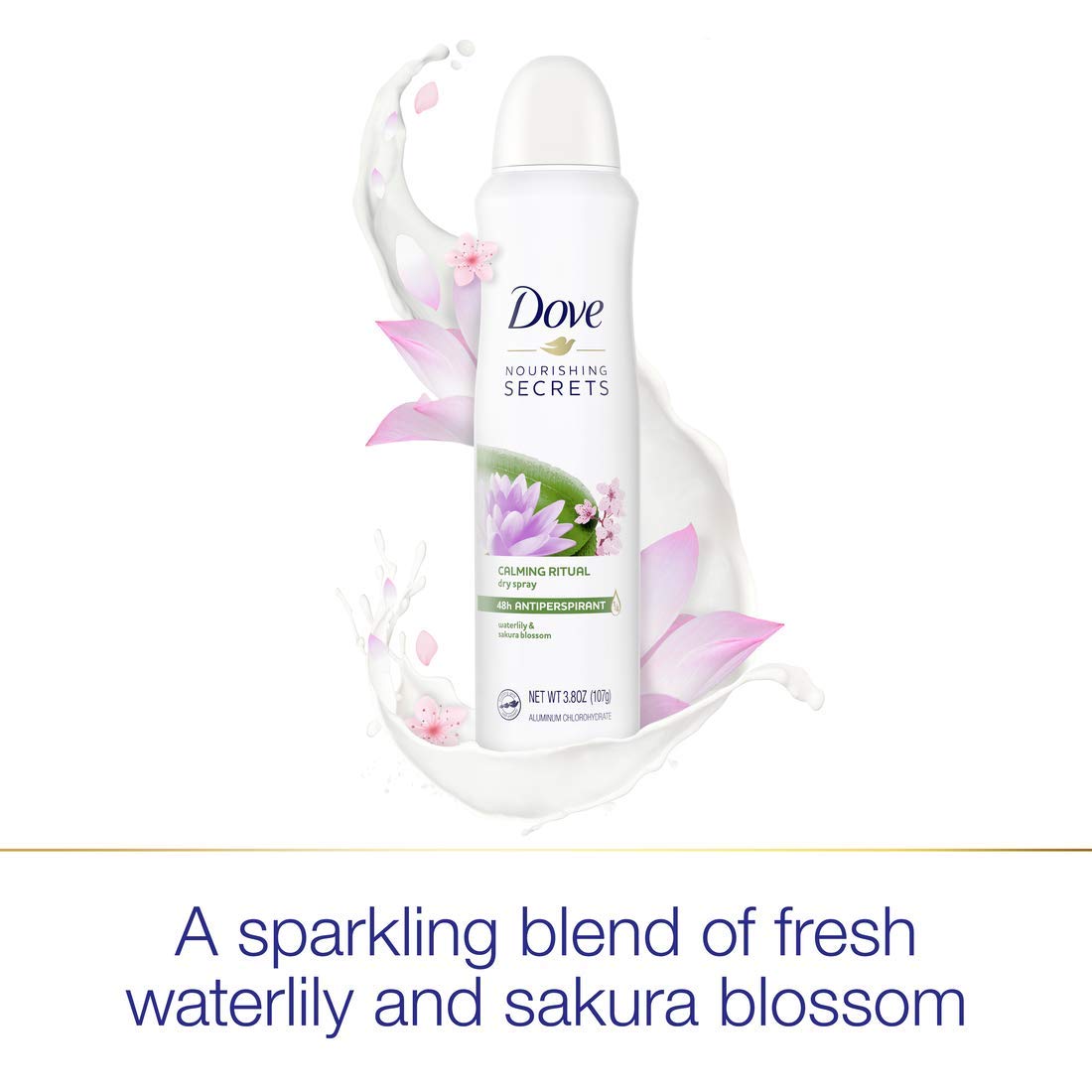 Dove Nourishing Secrets Dry Spray Antiperspirant Deodorant Waterlily & Sakura Blossom 3 Count for Women 48 Hour Sweat & Odor Protection 3.8 oz