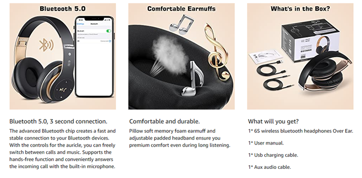 - 【 HI-FI WIRELESS HEADPHONES】: High Definition Stereo Headphones, and advanced bluetooth 5.0 chip that aim to deliver you superior sound quality with high fidelity deep bass and crystal clear treble, Deep, accurate bass response, extended frequency range, rechargeable. Lose yourself in immersive music even in the lowest volume levels!