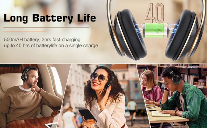 - 【ADJUSTABLE AND PORTABLE DESIGN】: Adjustable headband are ergonomic design and ultra-soft ear cups, Bluetooth headphones provide a comfortable around-ear fit. Foldable design makes it easy for you to take the headphones whenever they go. Perfect for on-line courses, classes, movies, etc.