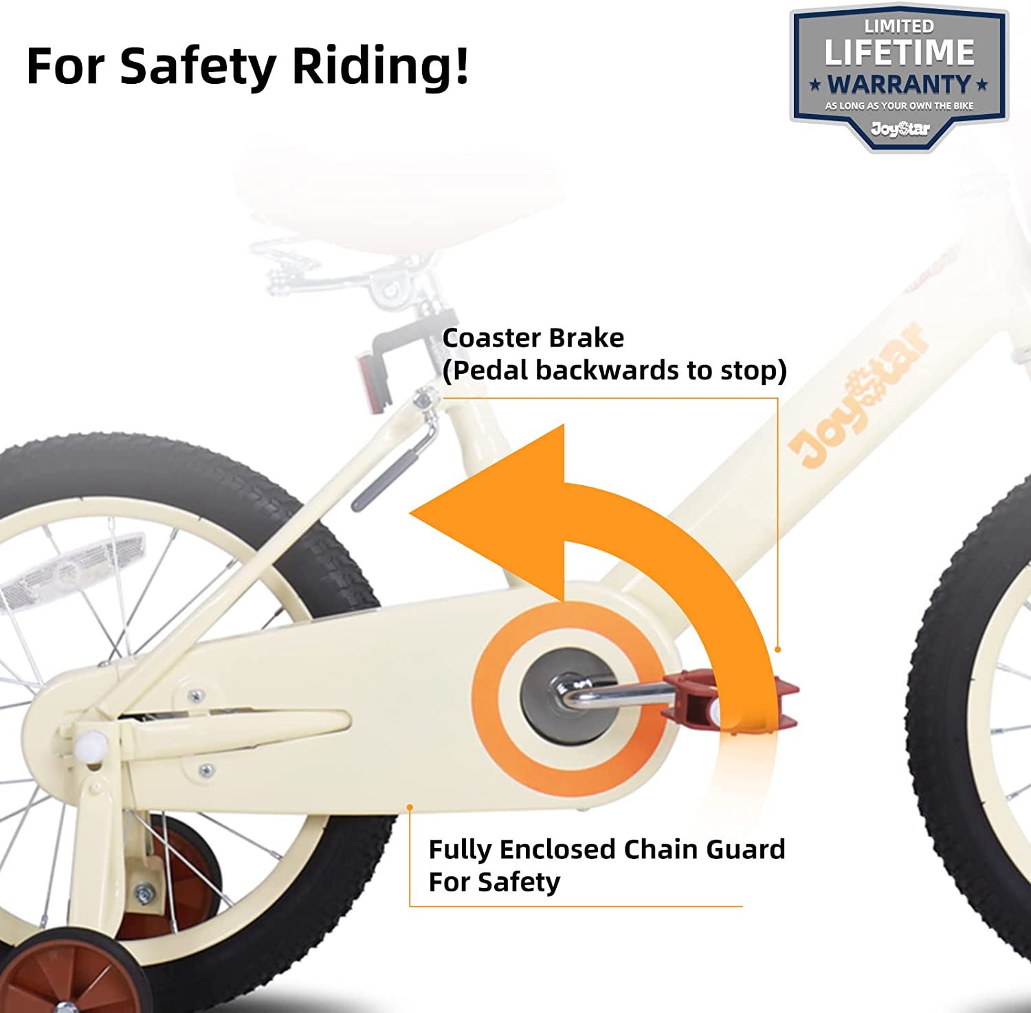 • Safe for Young Riders - Coaster brake is easy to provide phenomenal stopping power when needed, so they can stay in full control, a great option for young rider. Enclosed chain guard, prevent your kids getting hurt. Removable training wheels will keep everything pointing in the right direction till she's ready to balance on her own.