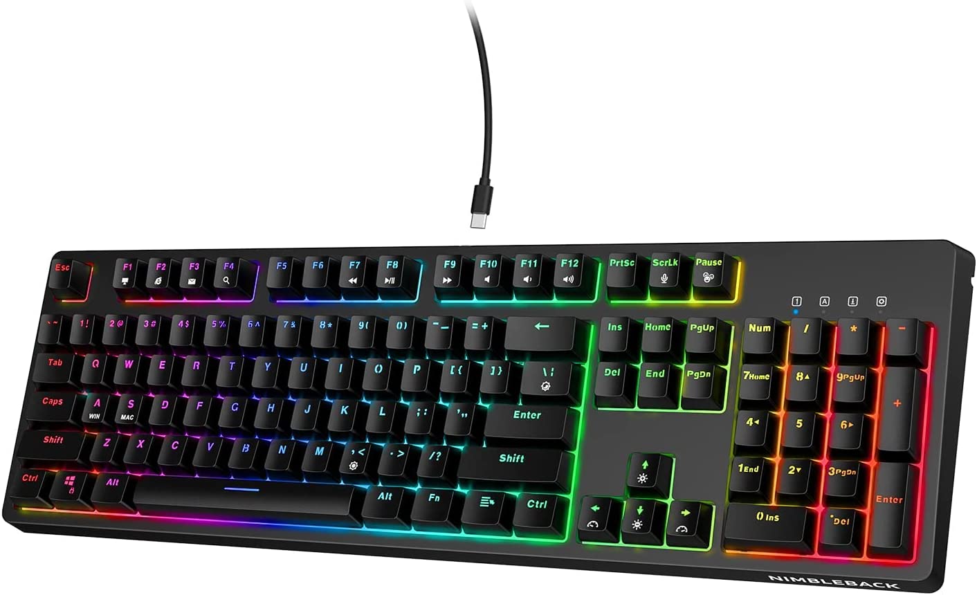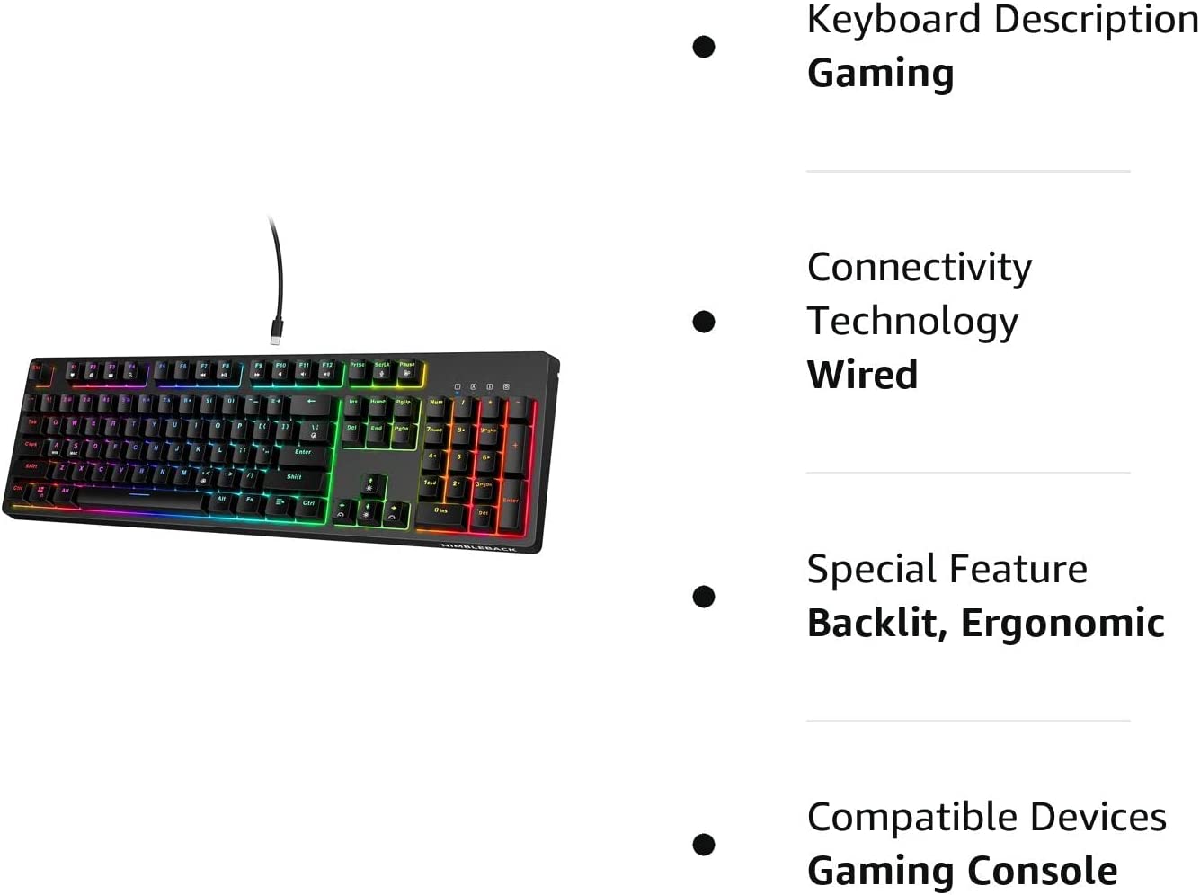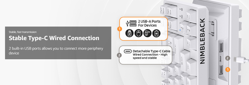 • 2 USB 2.0 Ports and Type C Wired Connection - 2 built-in USB passthrough ports allow you to connect more periphery devices such as mouse and flash disk directly into the keyboard for easy access and faster productivity. You can also use it as charging ports for cell phones and accessories. The type C wired connection method guarantees a high speed and stable data transmission.