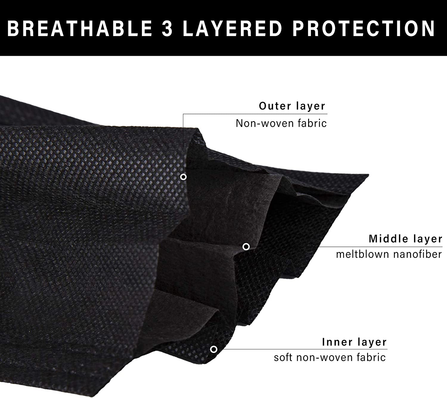 Disposable Face Mask, 100 PCS Black Masks, 3 Ply Protection Face Masks