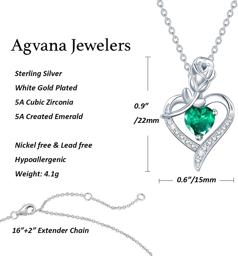 AGVANA Fine Jewelry Birthstone Necklace for Women Sterling Silver Genuine or Created Gemstone Rose Flower Heart Pendant Necklace Anniversary Birthday Gifts for Women Girls Mom Wife Lady Her