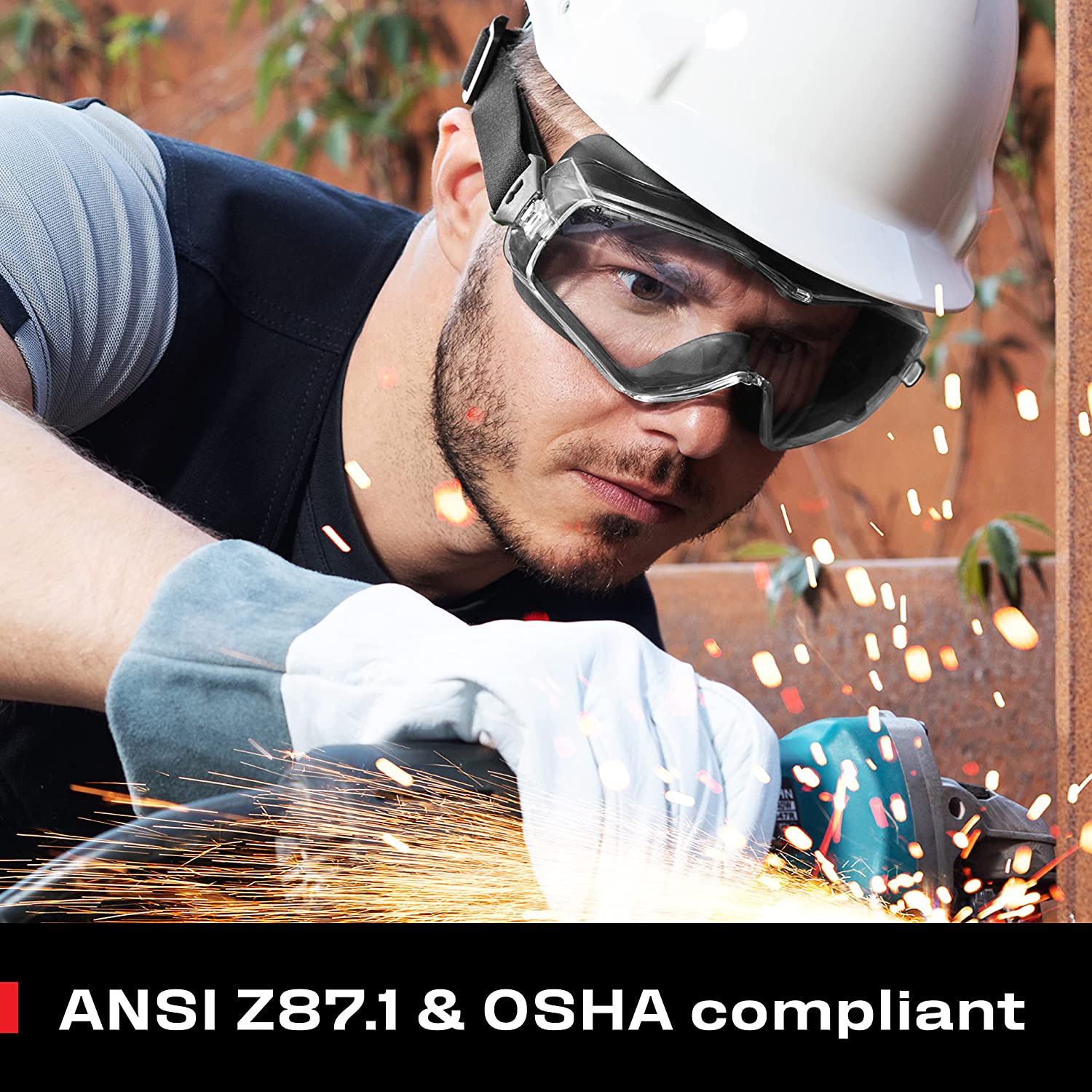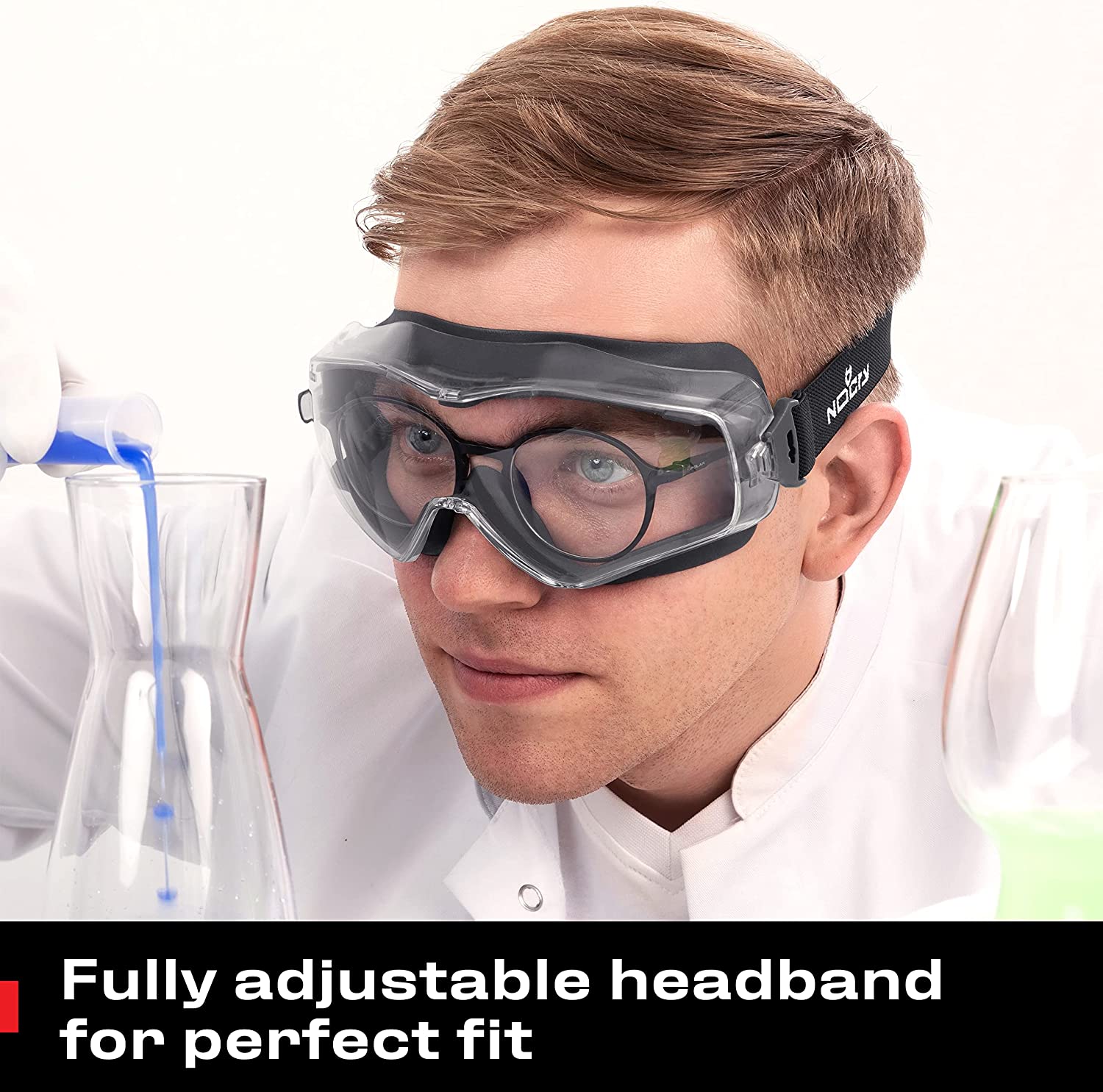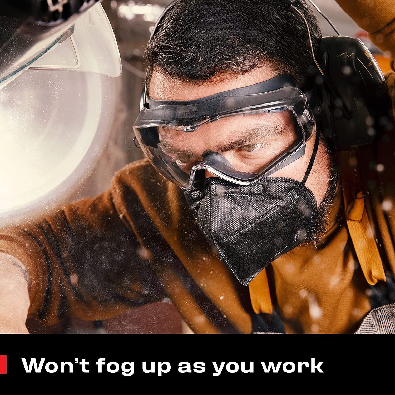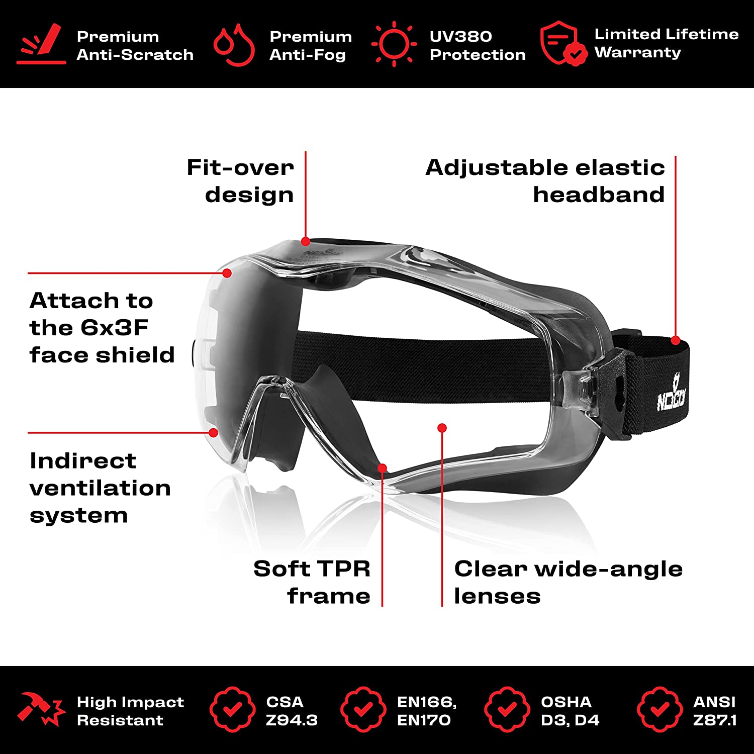 • WRAP-AROUND ANTI FOG SAFETY GOGGLES. On top of a premium UDC anti-fog and anti-scratch coating, these clear lenses also come with complete UV protection. The wide-angle lenses are impact resistant at up to 260 mph, offering serious eye protection.
