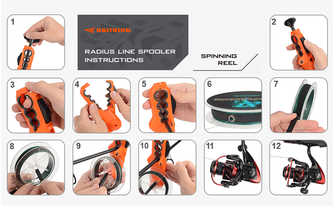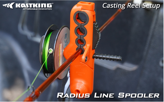Kastking Radius line spooling tool has a unique compact design which gives you a quick and easy way to spool both casting reels and spinning reels without twisting the fishing line, and without removing the reel from your rod.