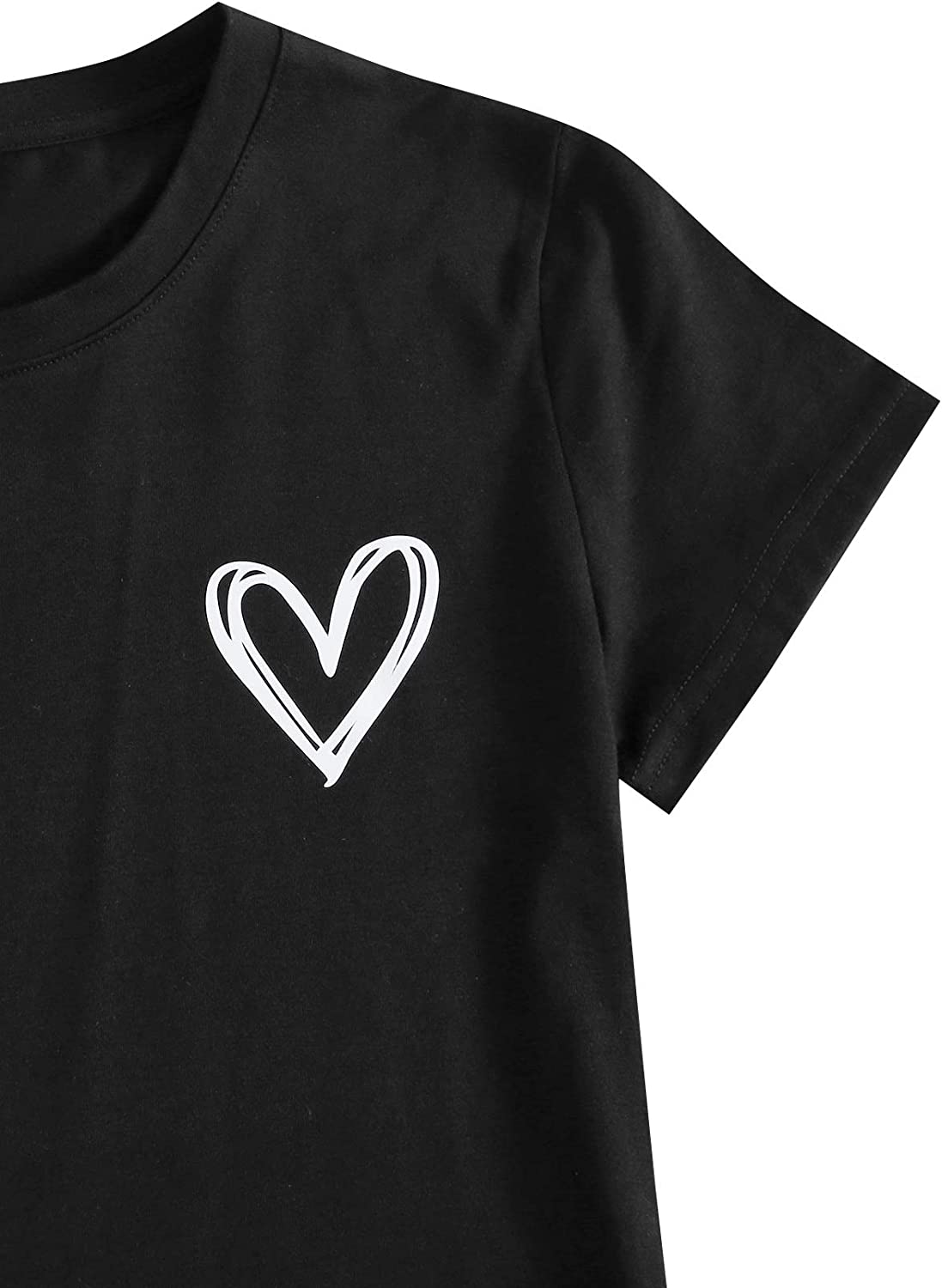 SweatyRocks Women's Heart Print T Shirts Summer Funny Short Sleeve Tops for Teen Girl