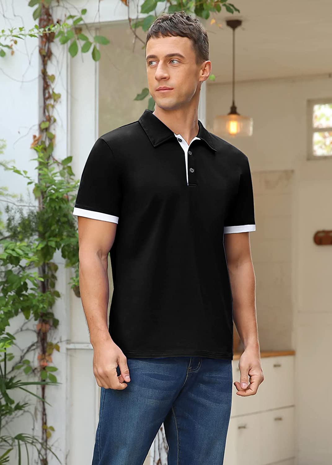 NITAGUT mens polo shirts are made of excellent fabric(95% cotton,5% spandex).Soft, comfortable and strechy to give you a cool feeling in the hot summer.The skin-friendly cotton shirts are also machine washable!To protect the fabric,please let it dry naturally or tumble dry lowButton closure,US Size.The lightweight golf polo shirt has good workmanship and sweat absorption performance.The simple slim-fit design and Superior cotton fabric make this short sleeve polo tee durable and an on-trend essential.The white trim on the sleeve also makes this T-shirt more fashionable and unique.