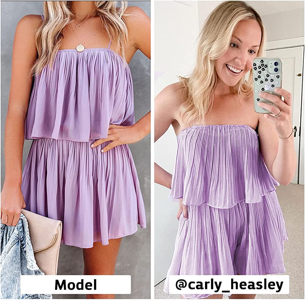 EXLURA Womens Spaghetti Strap Pleated Short Jumpsuit Sleeveless Flowy Playsuit Rompers