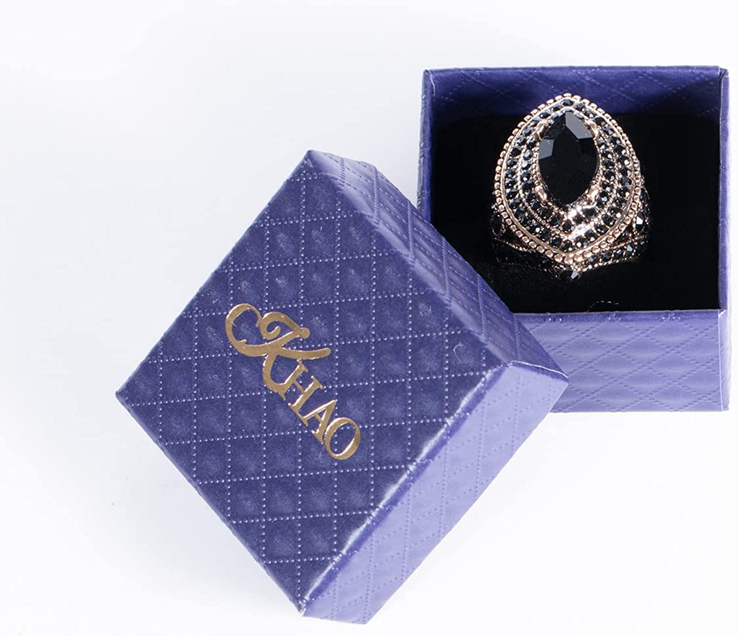 CKHAO Women Ring - 32mm Big Size Antique Gold Plated Turkish Style Black Gemstone Vintage Ring Women Jewelry J0769BLK