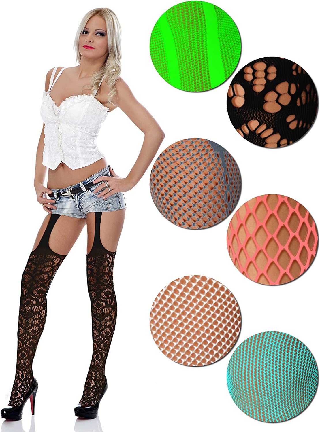 Package content: package includes 6 pairs suspender pantyhose stockings in different styles, sufficient quantity to satisfy your daily wearing needs; Color: as pictures shown