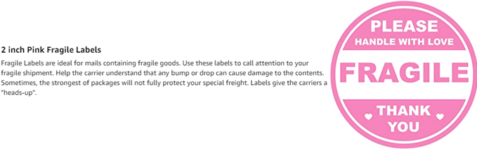 2 inch 300 PCS Pink Round Fragile Labels Circle Fragile Stickers for Shipping Mailing Envelops Cartons Pallets Adhesive Labels-Poskornwel
