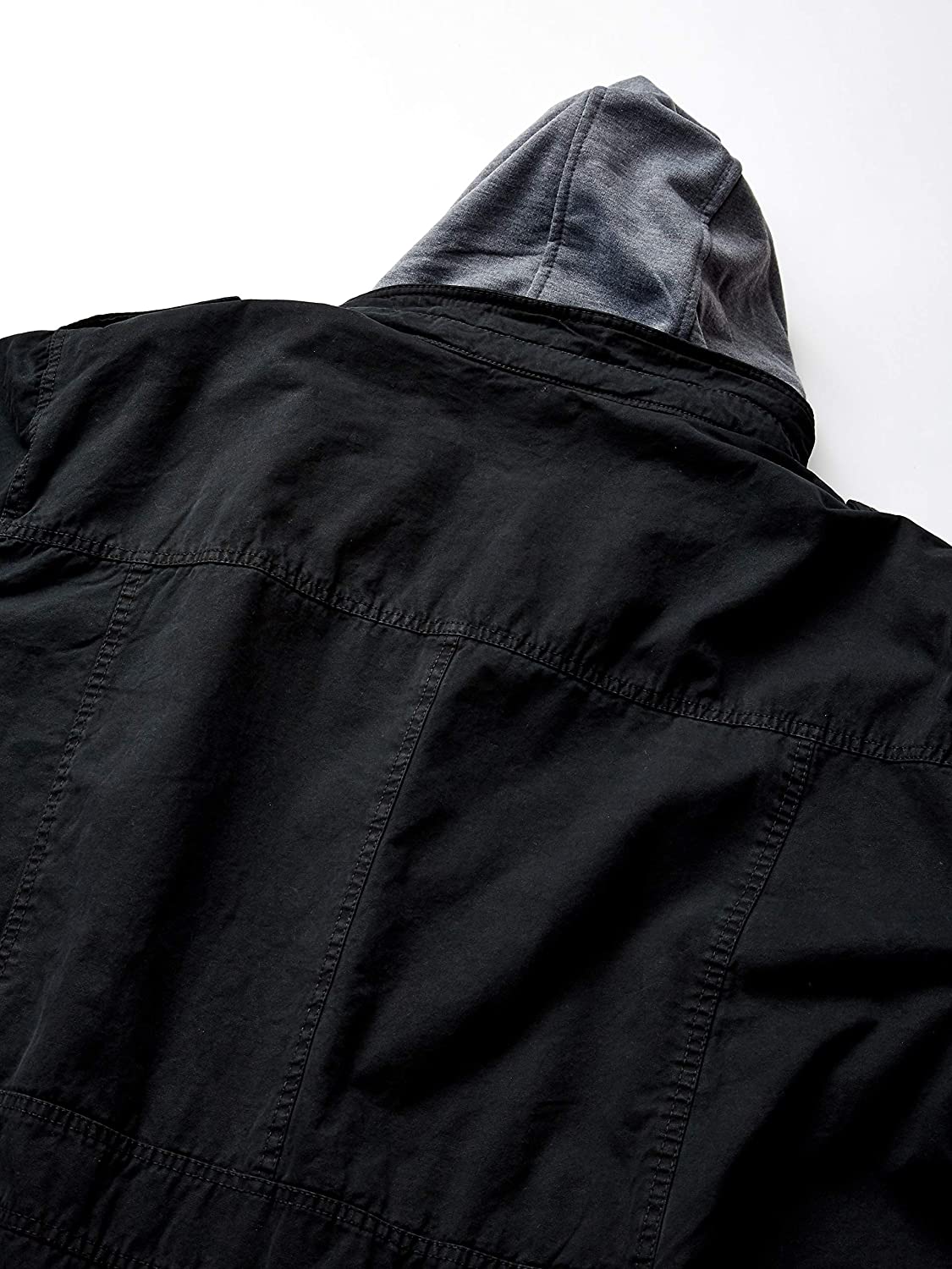 • FUNCTIONALITY: Washed cotton jacket with zip out jersey hood making this jacket a perfect versatile fit,  adjustable snap cuffs, chest and slant hand pockets, and interior pocket for added storage