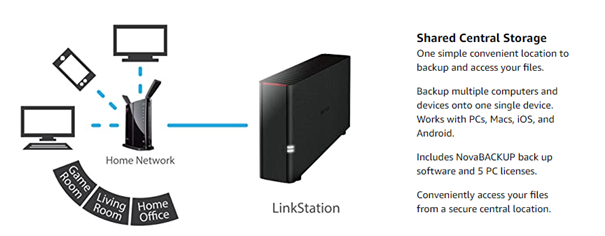 Buffalo's LinkStation 200 series network-attached storage is a reliable, easy-to-use data storage and personal cloud solution that is purpose-built for simplicity and security. This NAS server allows you to store your most important data in a centralized location and access it from anywhere. For ease-of use, you can simply connect the home server to your wireless router and access it anywhere from your home or even remotely. Easily back up multiple computers (Windows and macOS) and mobile devices (Android or iOS) to the same secure NAS storage location, and use Buffalo's WebAccess service to create a free personal cloud. Bypass monthly cloud subscription costs and enjoy on-the-go file access and sharing anytime, anywhere over the Internet, even through your mobile device.