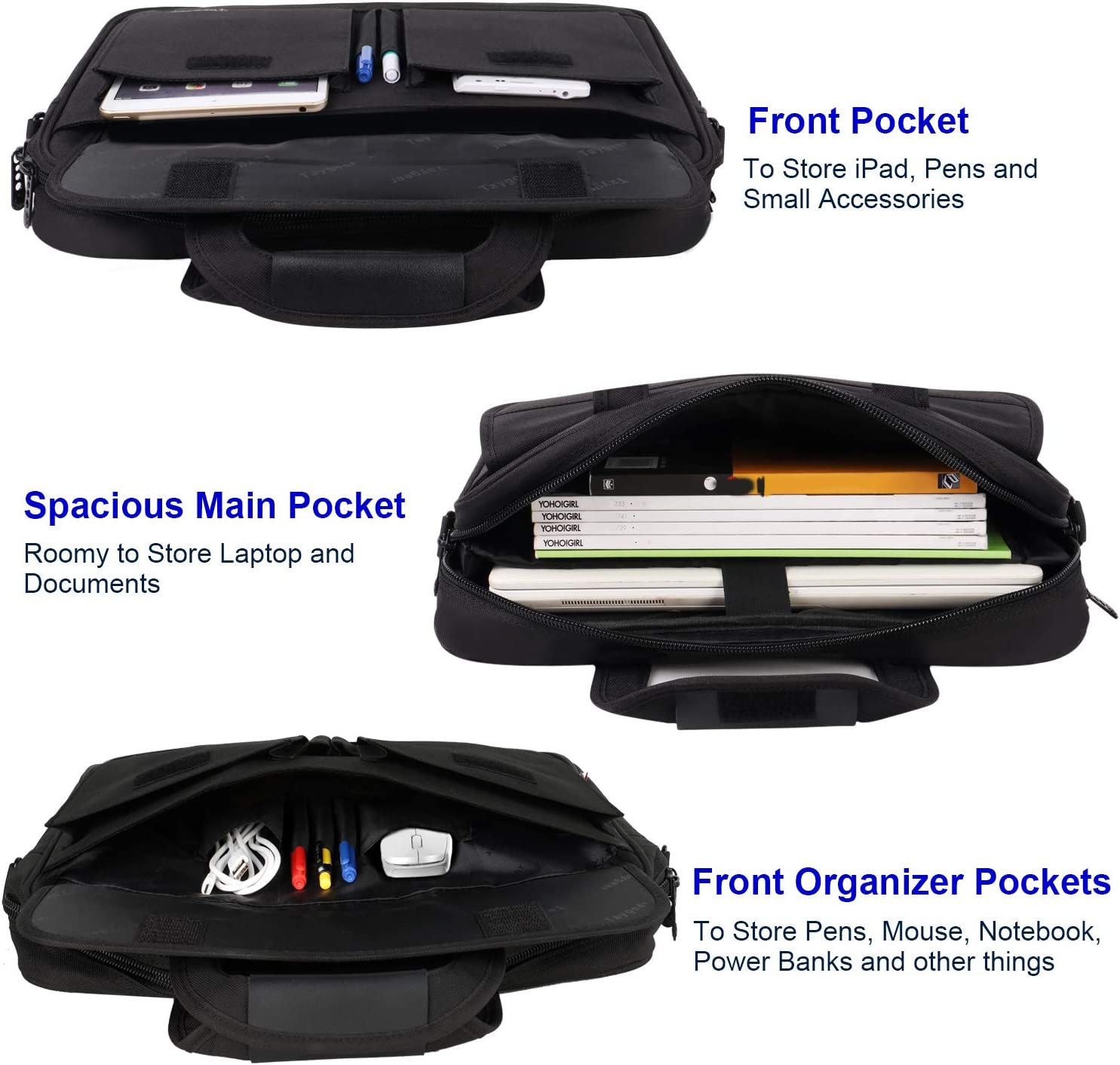 - Multi-Compartment Organizer: The computer bag includes external 2 pouches & 2 pen slots and inside several slots in front large pocket with magic tape under flap over, storage pen holders, documents, binder, power cords, mouse; 1 main zipper Pocket with foam padded sleeve fits most 15 15. 6 inch Laptop notebooks MacBook Ultrabook Chromebook; back invisible zipper pocket for your valuables