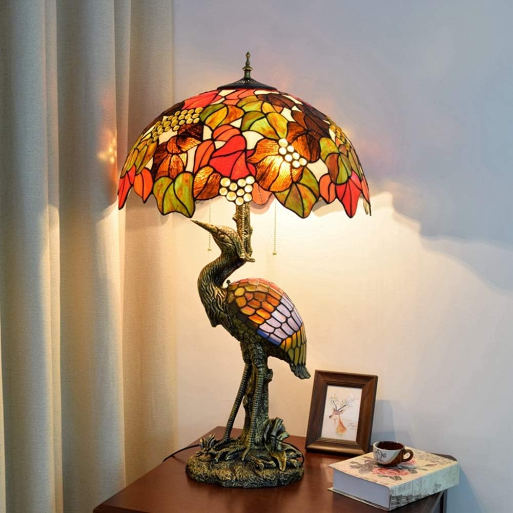Handmade Stained Glass Table Lamp 18" Tiffany Style Large Table Lamp Dark Red Brown Grapes Desk Lamp Creative Antique Light Base for Living Room Study Bedroom Table Lamp (Color : Female)