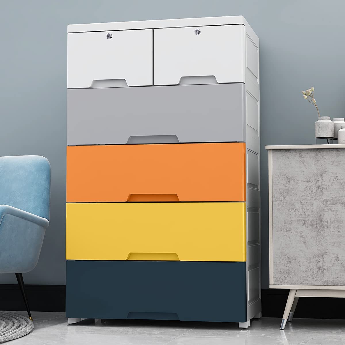 【6 DRAWERS ORGANIZER】Features 4 large drawers and top 2 small cabinets locker,6 drawers for large storage space.Storage cabinet on wheels made it easily to move anywhere you want