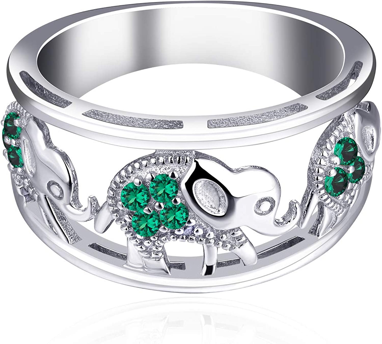 JO WISDOM 925 Sterling Silver Cubic Zirconia Elephant Ring Animal Rings