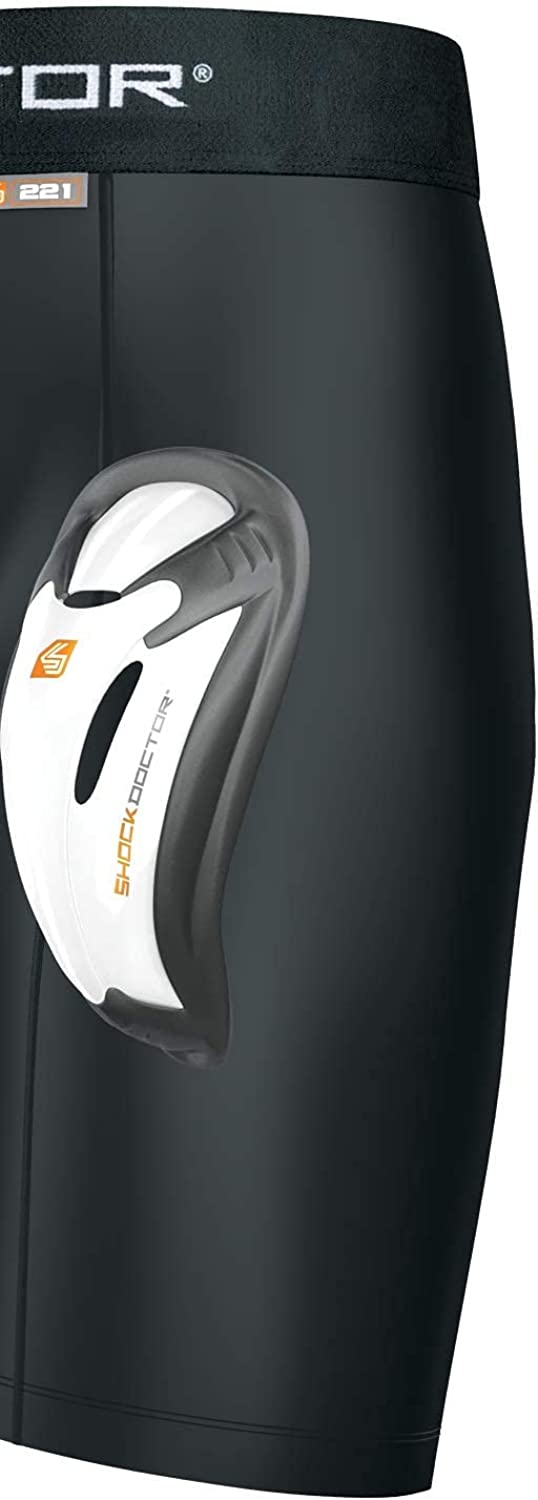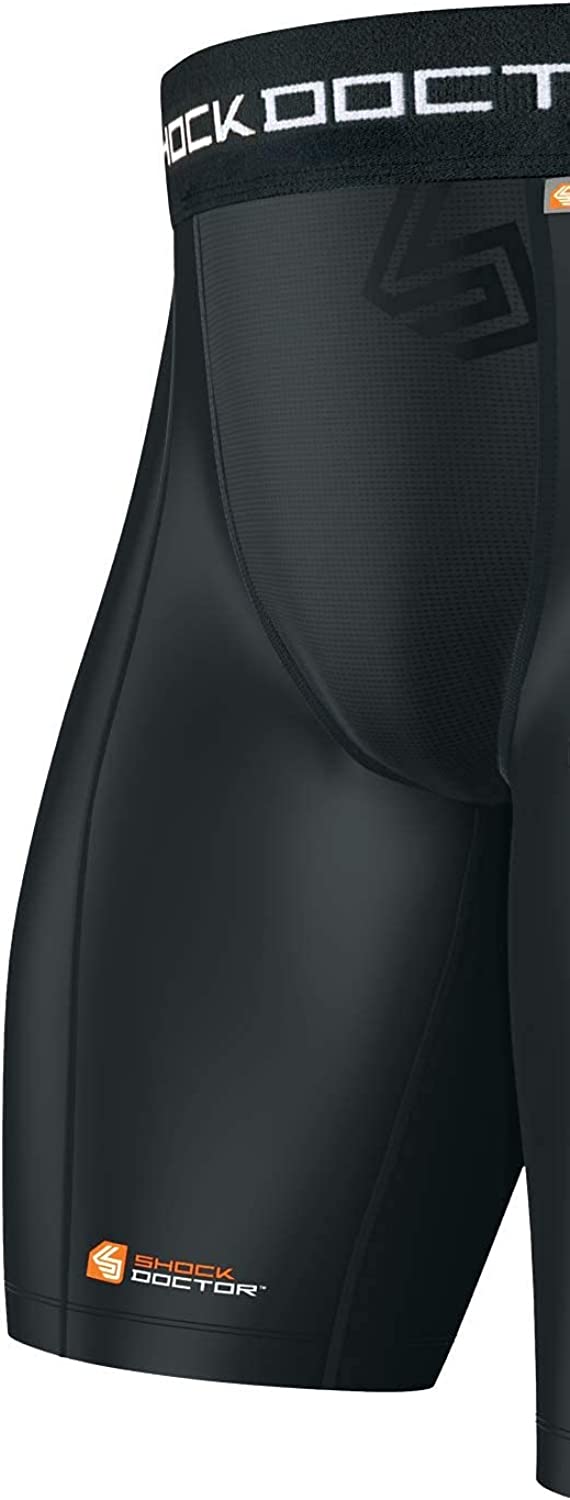COMFORTABLE PROTECTION: Shock Doctor's Compression Shorts come with a removable Bio-Flex Protective Cup designed to shield areas where protection is most crucial, positioned for a fit that allows a wider range of motion