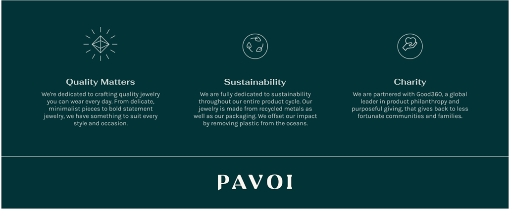 • ✦ SUSTAINABILITY ✦ PAVOI is dedicated to sustainability throughout our entire product cycle. Our jewelry is made from 100% recycled materials and we package in 99% recycled and compostable materials. We work to reduce our carbon emissions and offset plastic consumption by removing 275,000 bottles from oceans annually. We are committed to maintain a balanced and eco-friendly business that minimizes our environmental impact. Trust that PAVOI is continuously working towards a greener future.