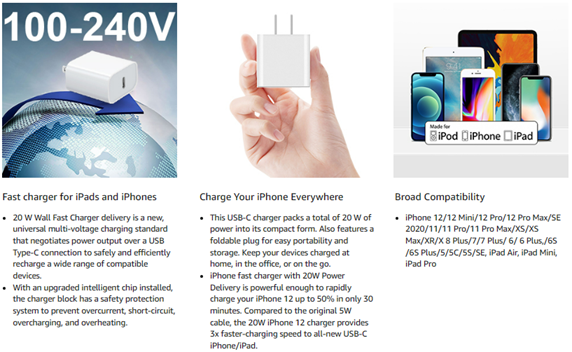 - [Apple iPhone Chargers]20W PD 3.0 USB Type C power delivery wall plug,PD 3.0 Quick-Charge USB C port provides Max 20W output power,charge your device up to 3x faster than the original 5 W charger,charging your iPhone up to 50% in just 30 minutes for iPhone Charging,At 3A Maximum,Helps You Work Efficiently.