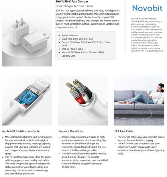 - [Fast Charger iPhone ]Use the official iPhone 14 cable 20W USB C wall charger to access fast-charging for iPhone 14/14 Pro/14 Pro Max/14 Plus/iPhone 13/13 Mini/13 Pro/iPhone 12/12 Mini/12 Pro/12 Pro Max/SE 2020/11/11 Pro/11 Pro Max/XS/XS Max/XR/X 8 Plus,iPad,iPad Pro iPad mini iPad Air.This Novobit Power Delivery 3.0 FAST charger also charges for iPhone 7 6 Plus,iPhone 5 5c 5s SE Airpod at an original charging speed.
