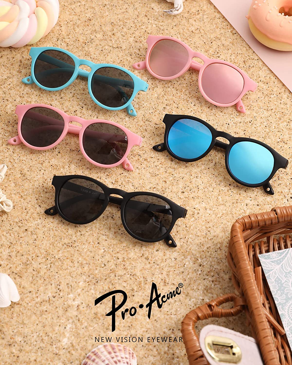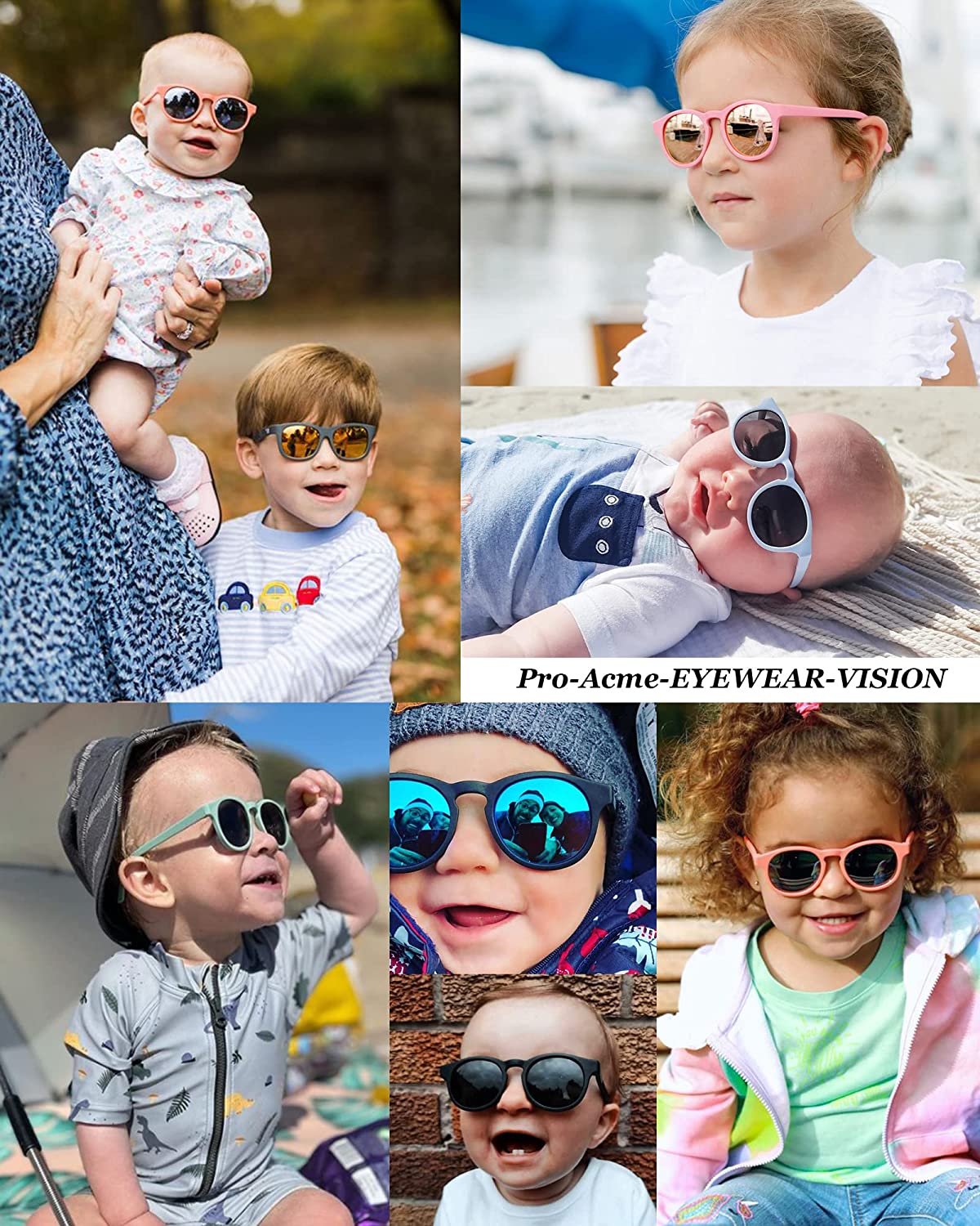 COMFORTABLE AND DURABLE: Pro Acme infant sunglasses feature flexible rubber frames and impact- and shatter-resistant lenses that won’t break when you bend, twist, or step on them. Trust us, we’ve tried.
