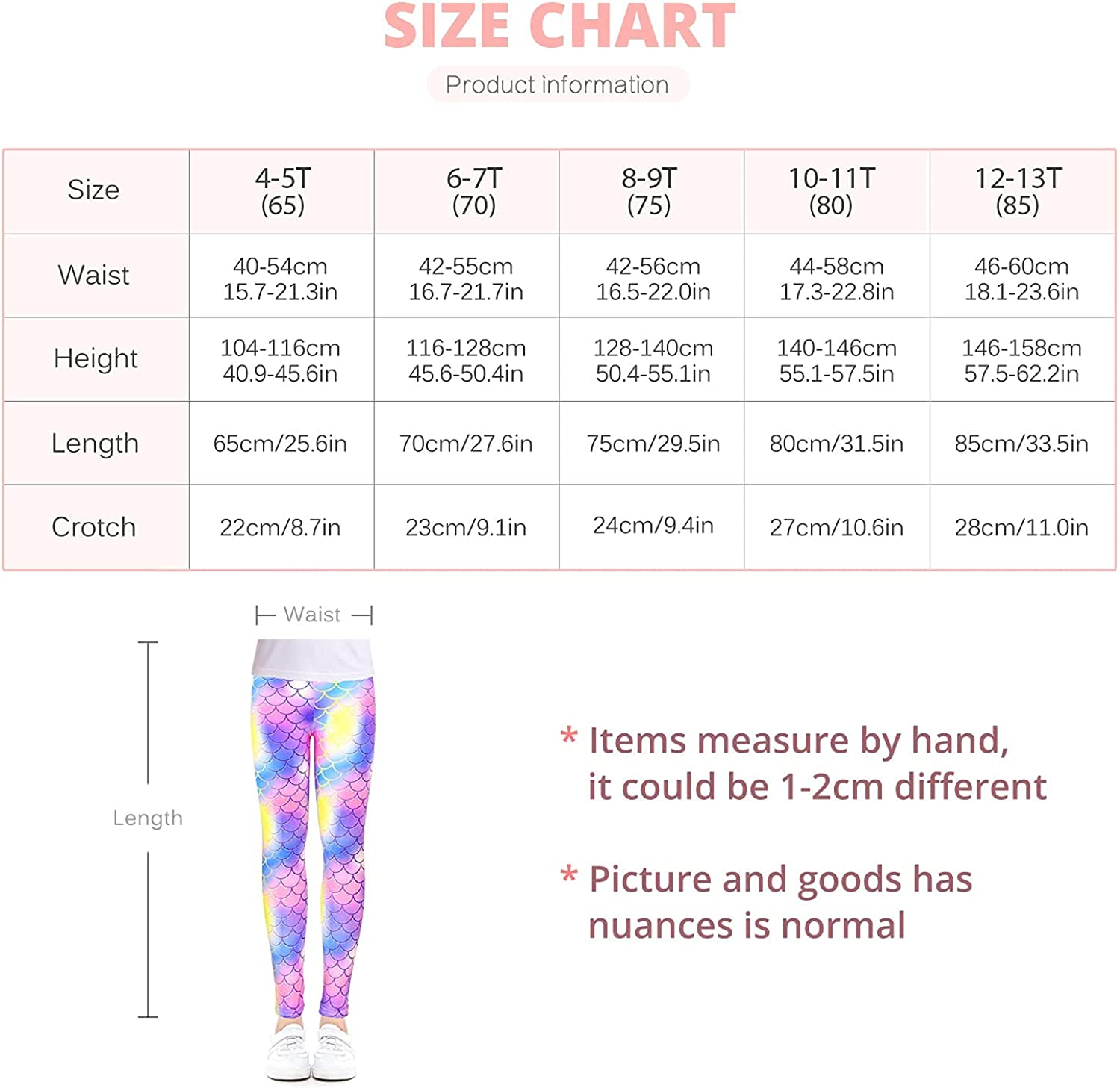 【RECOMMENDED SIZE】: These girls' leggings are available in ages 4-12, so you can easily choose the girl leggings that fit your child, (Size 4-5T,Size 6-7 Years,Size 8-9 Years,Size 10-11 Years, Size12-13 Years) girls active leggings:The designs are super cute and the style is trend and fashionable. which makes your kids stand out among peers.