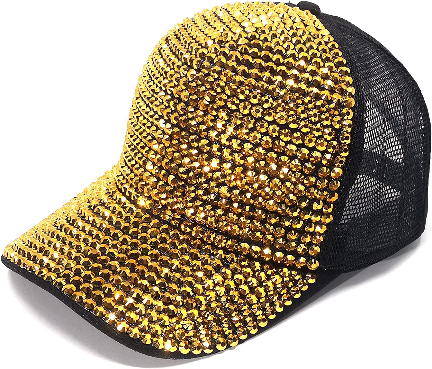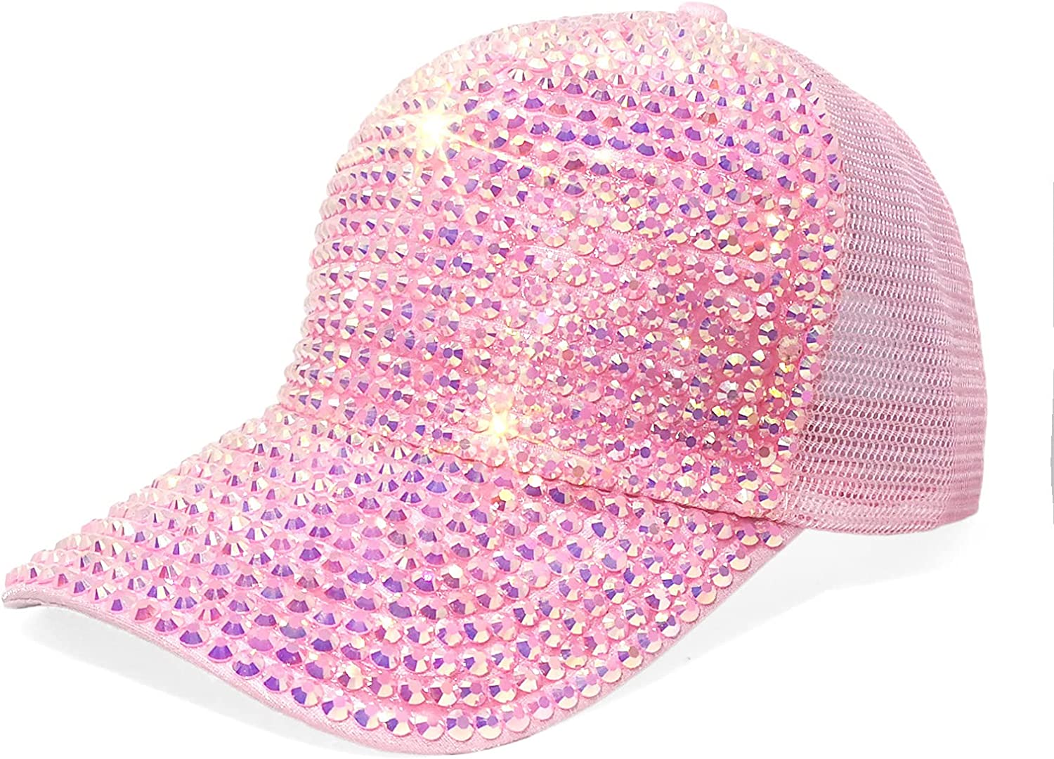 【DESIGN】: Unique design with Colorful bling studded rhinestone, makes you look charming and fashionable. Mesh Hats with ponytail holes Provide maximum comfort ,breathable,Suitable for any occasion, Amazing looking in the sun
