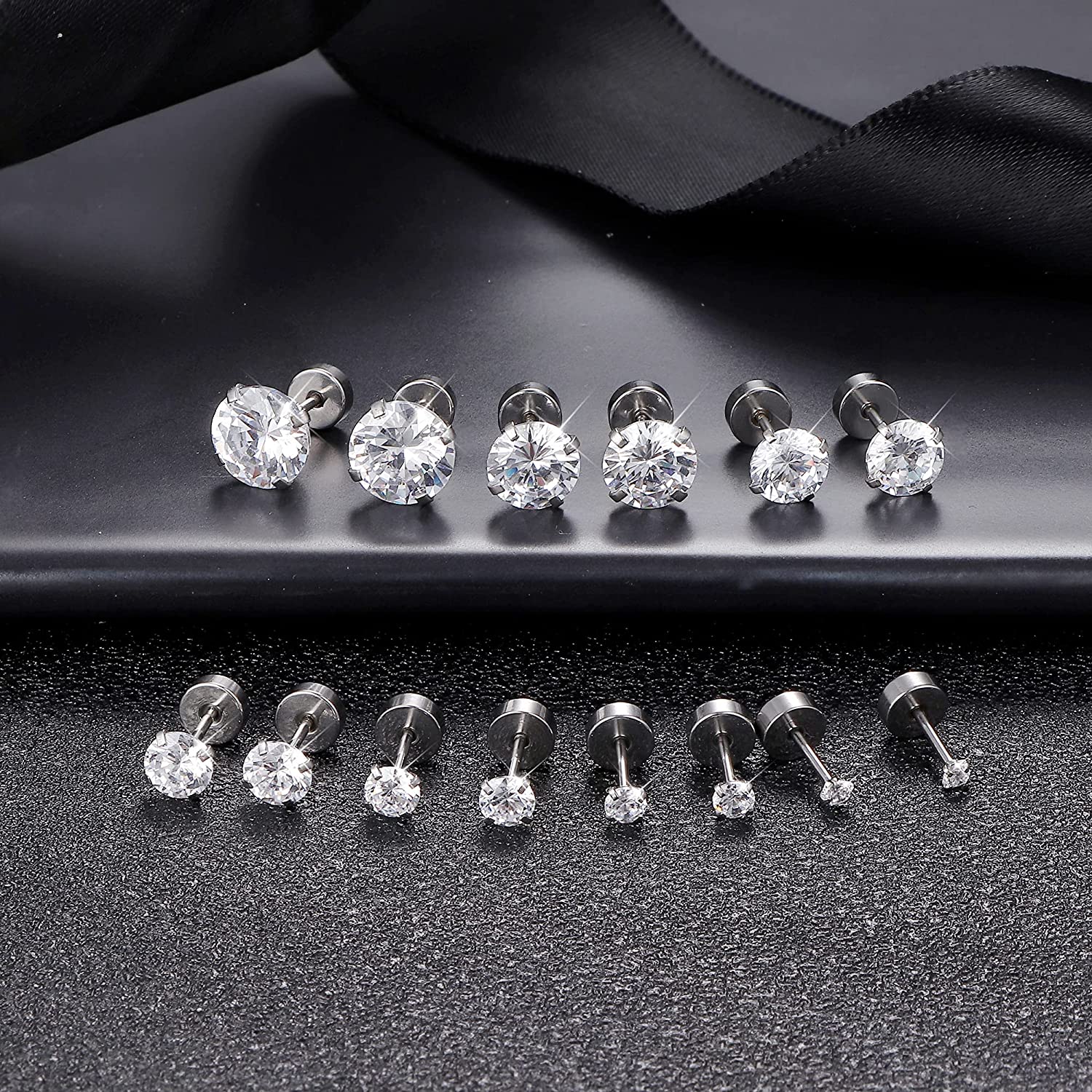 【Comfortable to Wear】 Highly polished finishing and strict metal electroplating craft makes super smooth and shiny surface, comfortable to wear. 2-8mm Clear cz flatback earrings, also can be used as tragus piercing, helix piercing, cartilage earrings...
