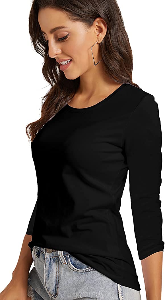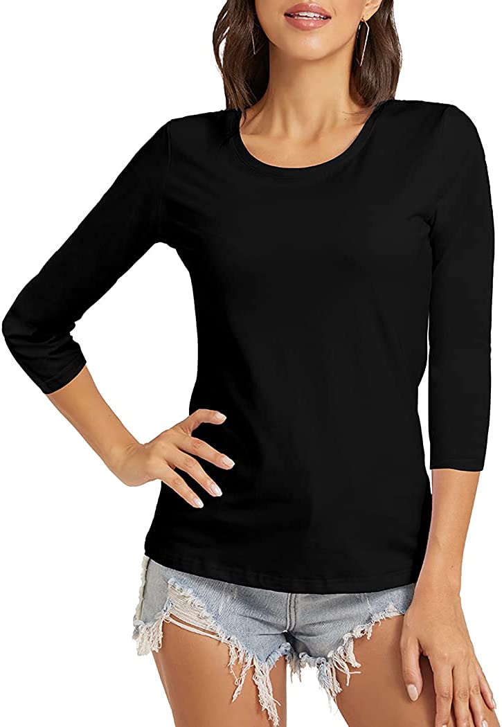 VIIOO Women's Basic 3/4 Sleeve Crew Neck T-Shirt Casual Solid Slim Cotton Top