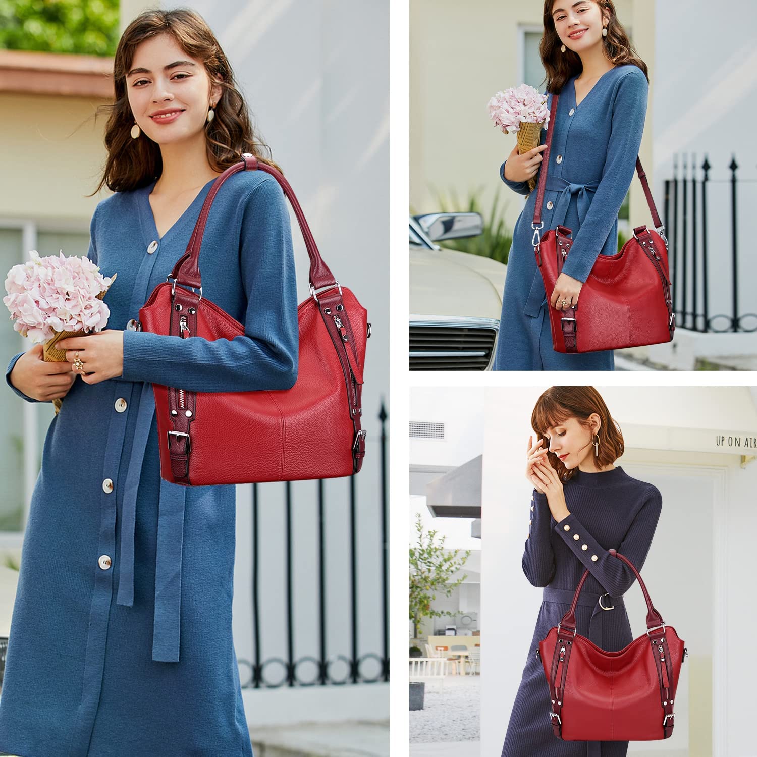 GENUINE LEATHER -- SOFT Leather large hobo tote purse made of genuine leather with pebble texture; The silver handware is high quality and durable. Bottom with 4 rivets for protecting your handbags bottom away from abrasion.