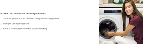 • High Quality:W10314173 is made of high-quality metal and rubber.It has undergone long-term testing and inspection by the manufacturer. w10314173 complies with OEM standards, it is quiet and durable can perfectly fit your dryer, please rest assured to buy and use.