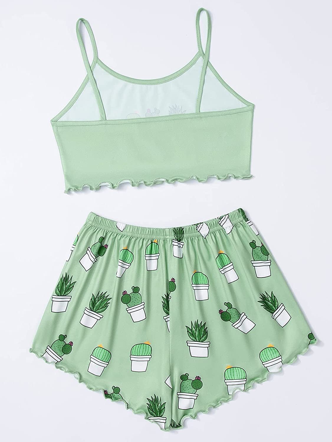 SheIn Women's Cute Cartoon Print Cami Top and Shorts Pajama Set