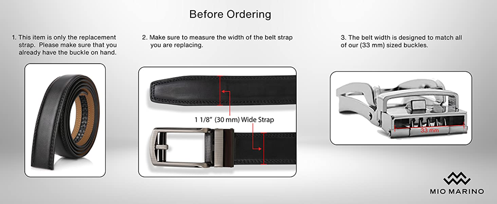 • Great Replacement for all your old belts - Whether your belt is worn out or accidentally cut short, you can easily fix it with Mio Marino's belt replacement. Use a simple scissor to clip the leather belt replacement to your custom size. and the belt will look brand new again.
