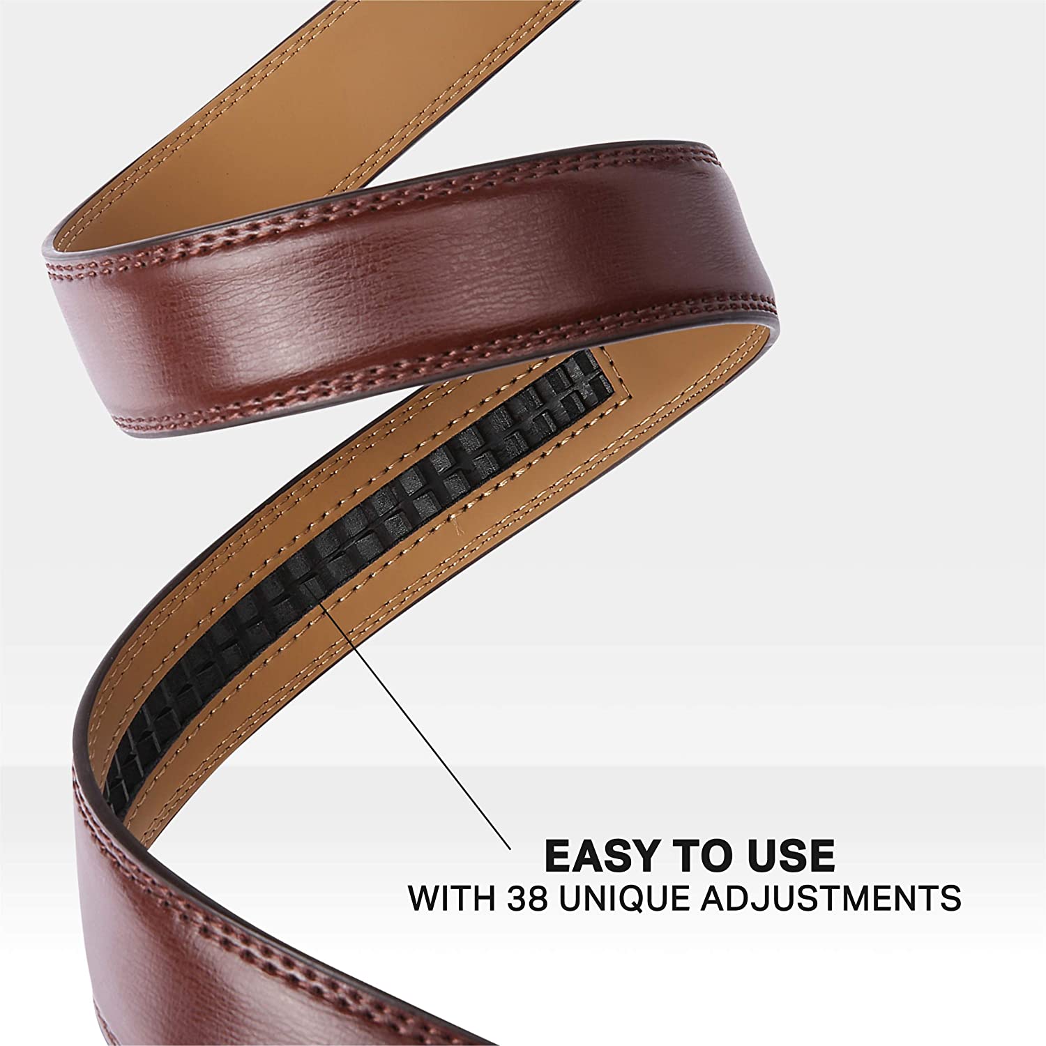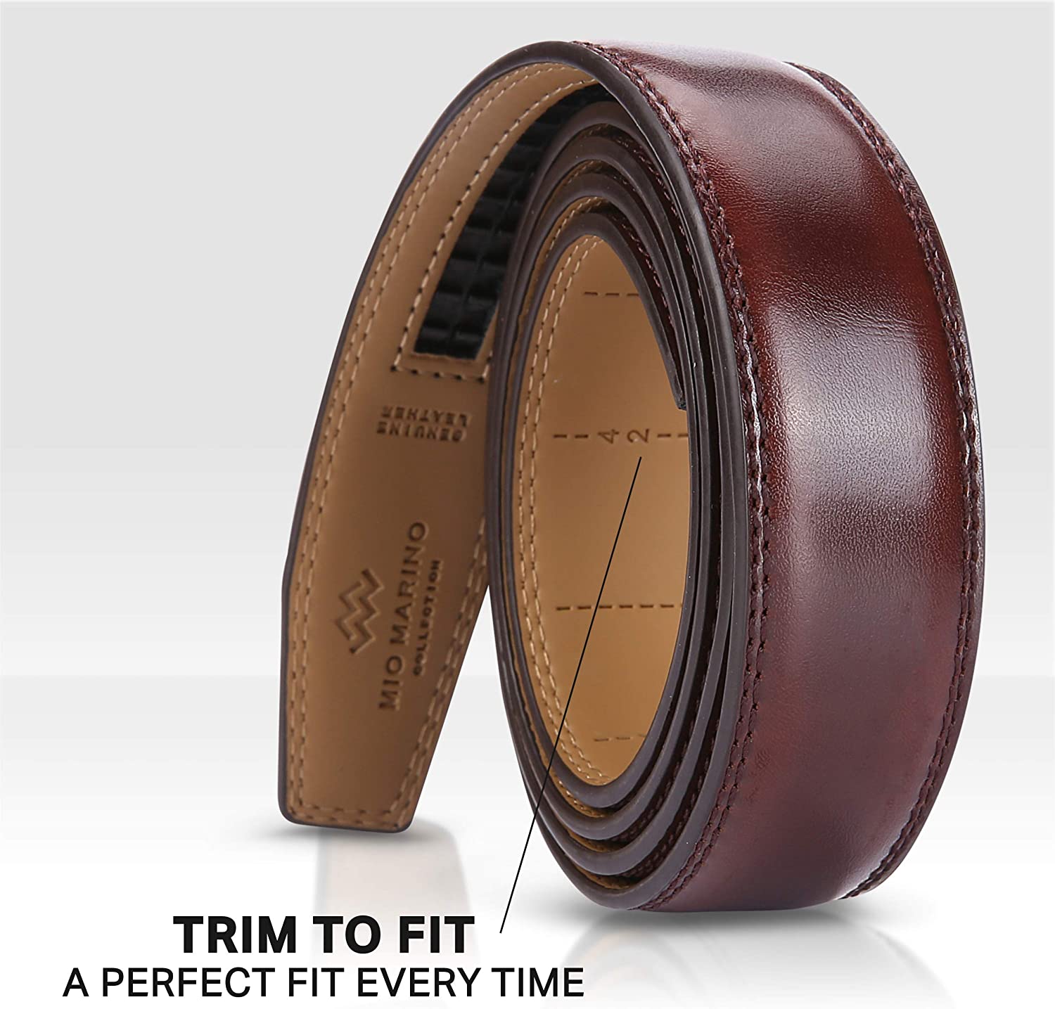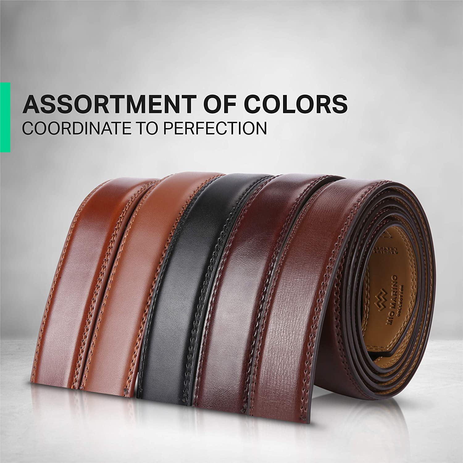 [2 Pack] Mio Marino Mens Genuine Leather Ratchet Belt Replacement Strap 1 1/8 Without Buckle