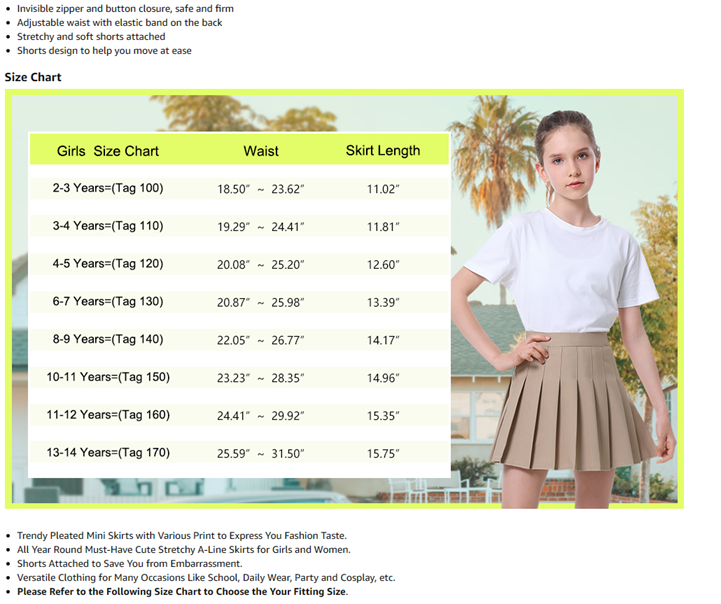 SANGTREE Girls Pleated Skirt Skort, Pleated Shorts, 2 Years - 14 Years