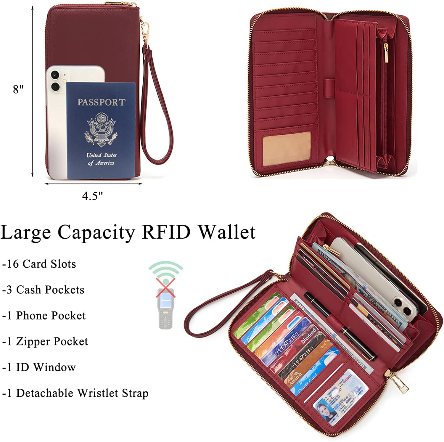 • ❀Wallet clutch--dimension:8.5''x4.5''x1'';RFID Blocking can protect personal information;easily holds 25 pieces of paper money,16 cards, ID card and an 6.7" iPhone and passport, pen, checkbook,etc.