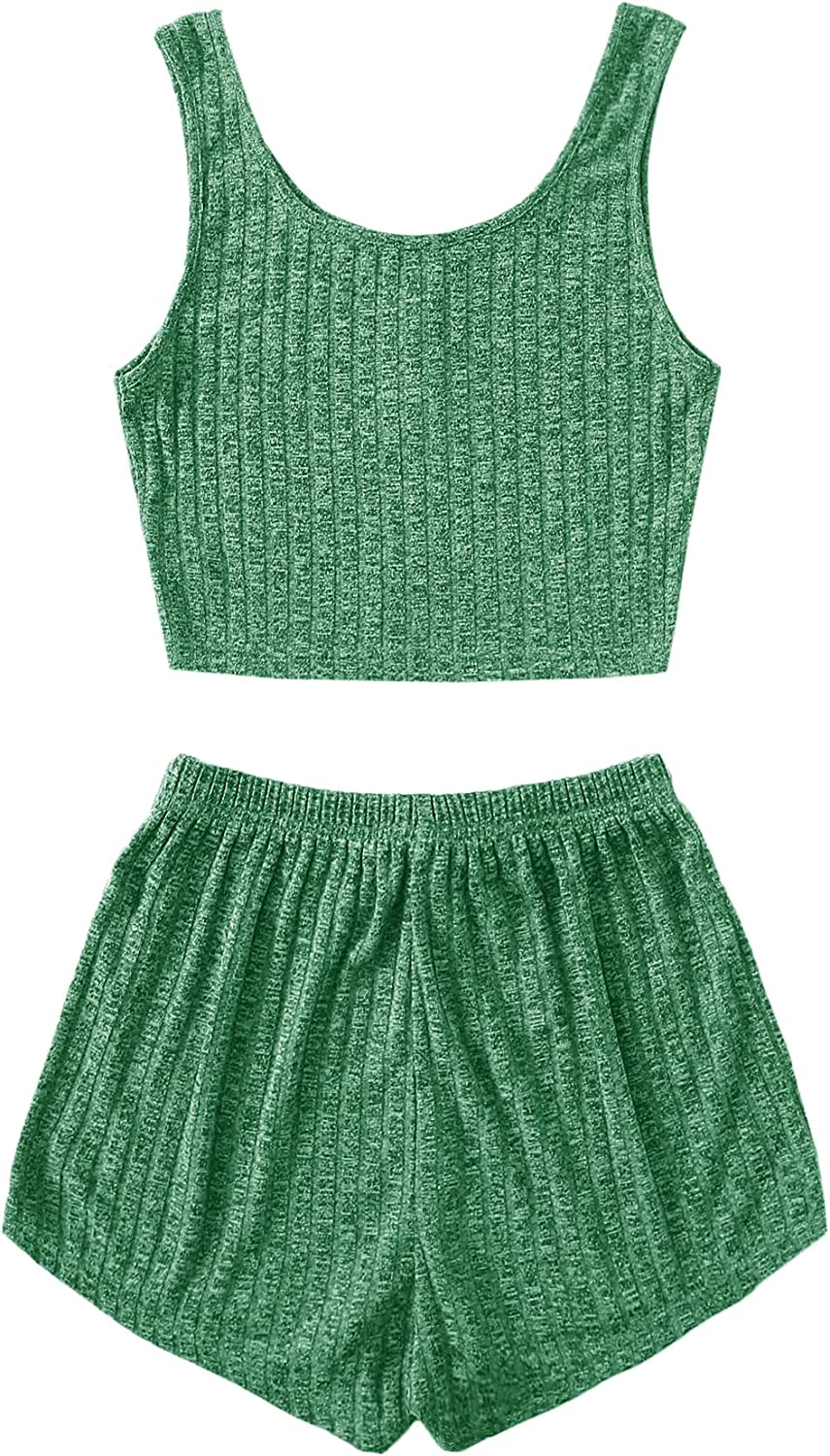 SheIn Women's 2 Piece Sleeveless Button Crop Tank Tops and Shorts Lounge Set