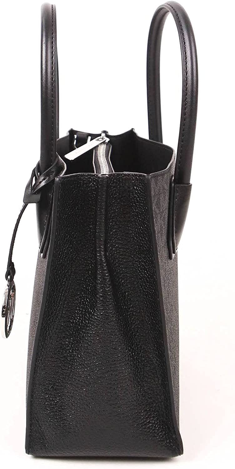Polyester,Leather Imported Silver Harddware Custom Fabric Lining Middle Zipper Compartment 2 Multi-Functional Pockets 1 Zipped Pocket Straps: 4.25", 22.25"-24.5" Measurements 8.75" (L) X 7.5"(H) X 4"(D)
