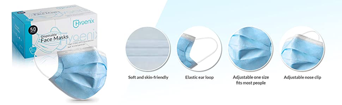 Hygenix 3ply Disposable Face Masks PFE 99% Filter Quality Tested by a US lab (Pack of 50 Pcs)