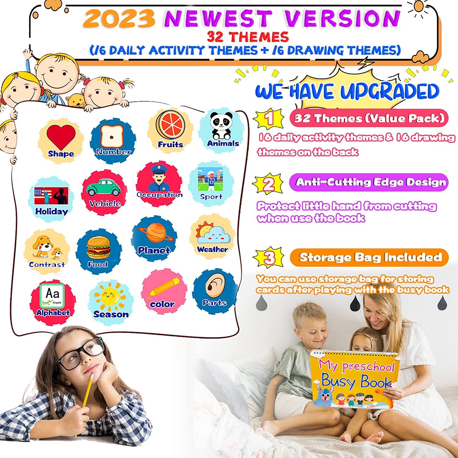 • 【2023 NEWEST VERSION】HeyKiddo Preschool learning toys is an upgraded version thicker durable, and anti-cutting edge design to protect little hands