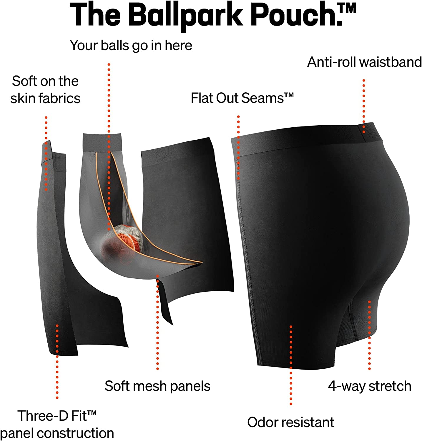 BALLPARK SUPPORT: Our men’s underwear come equipped with the patented BallPark Pouch to reduce friction and keep your man-parts in place with breathable mesh panels for chafe-free comfort.