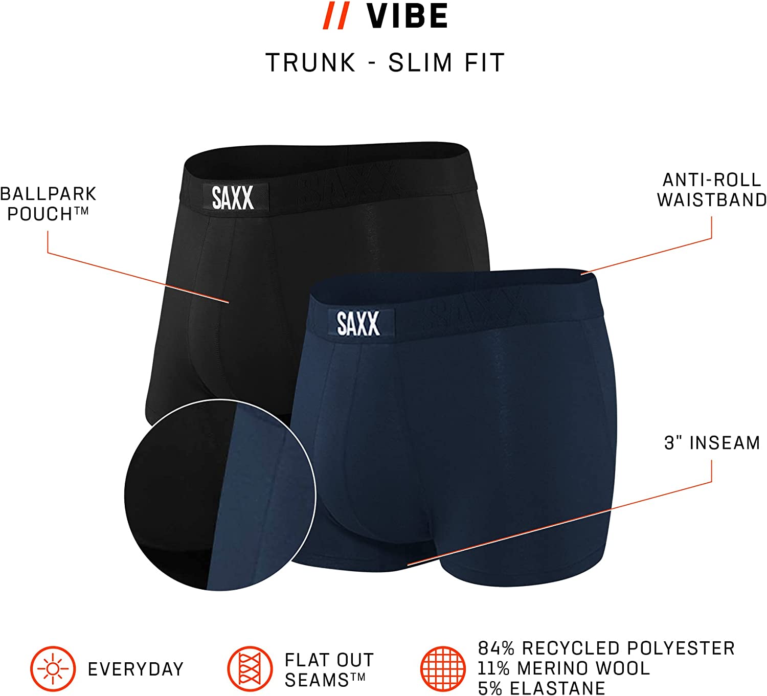 SLIM FIT: The form fitting SAXX underwear trunk is made from soft, moisture wicking fabric which makes them ideal for layering. Trunk briefs have no fly and are warn with ease thanks to the anti-roll waistband and 3” seam.