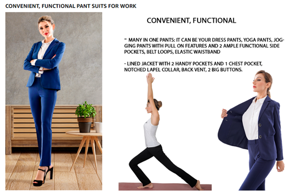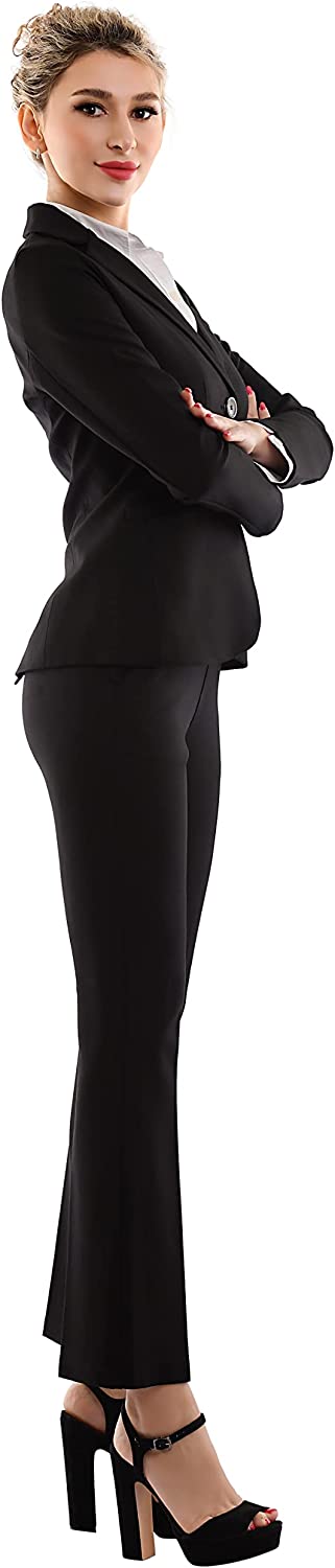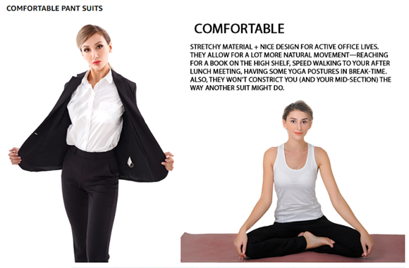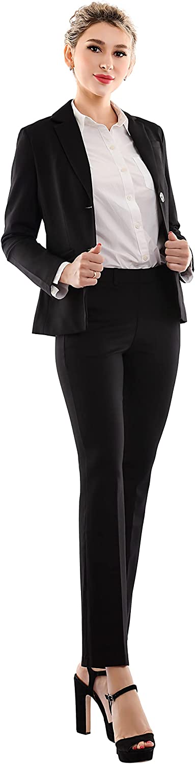 MOST COMFORTABLE PANT SUITS SET you'll ever wear to work: - Made of Durable, Ultra-comfy, 4-way stretch ponte fabric. You can look professional in office while performing hardest yoga postures in Lunch time.