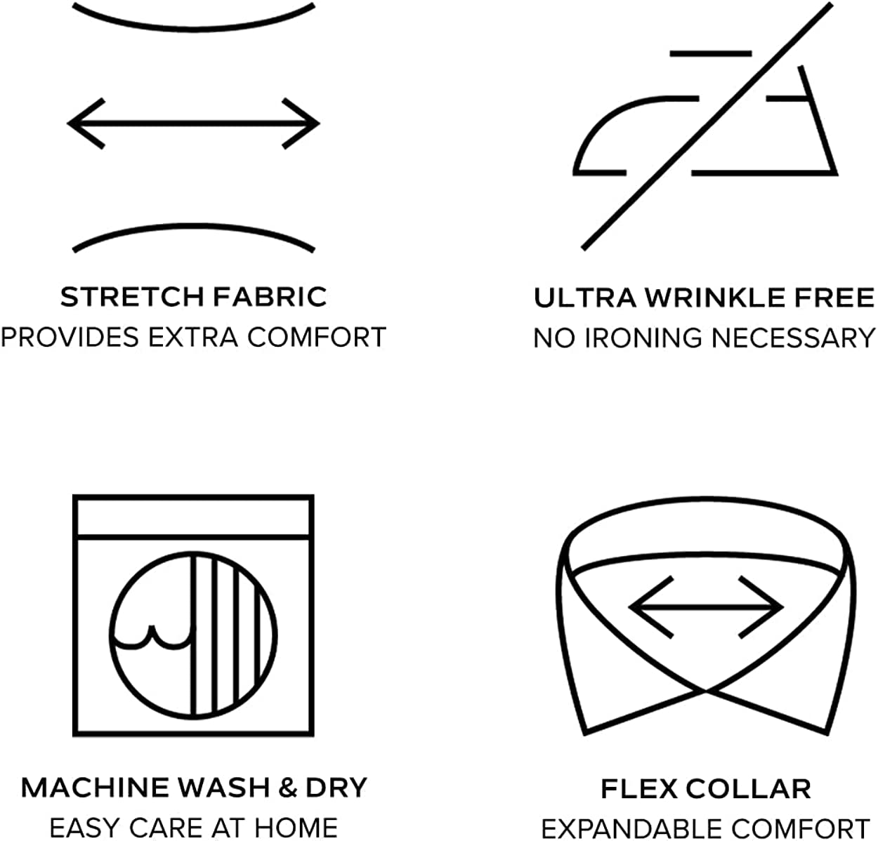 - Ultra Wrinkle Free: Advanced wrinkle-resistant fabric for less ironing and even easier care at home. Flex Collar: Stretches up to half an inch for expandable comfort. Stretch: Fabric stretches and moves with you for extra comfort.