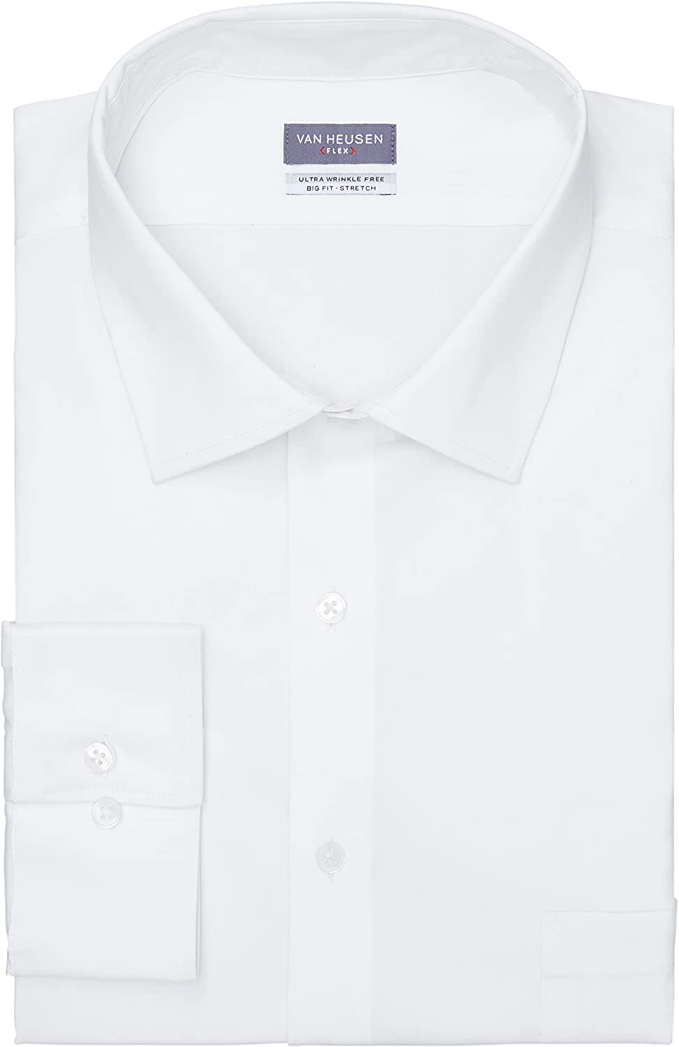 Van Heusen's new Ultra Wrinkle Free dress shirts are made from fabric that's been specially treated for advanced wrinkle resistance that allows for less ironing and even easier care at home. This essential style features a Flex collar that gives your neck a break by expanding up to a 1/2 inch, while all-over stretch ensures every move you make is a comfortable one.