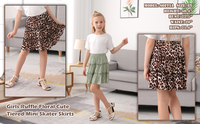 Features: Cute and refreshing casual summer style, layered and ruffle hem design, with bohemian pattern print. High elastic waist makes this pleated circle skirt fit and beautiful. Flared swing aline silhouette, above knee length, no lined.