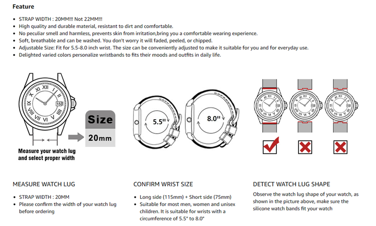 STRAP WIDTH: 20MM, COMPATIBLE WITH ALL SMART WATCHES WITH 20MM WIDTH WATCH LUGS. DON'T FIT FOR 22MM SMARTWATCH.