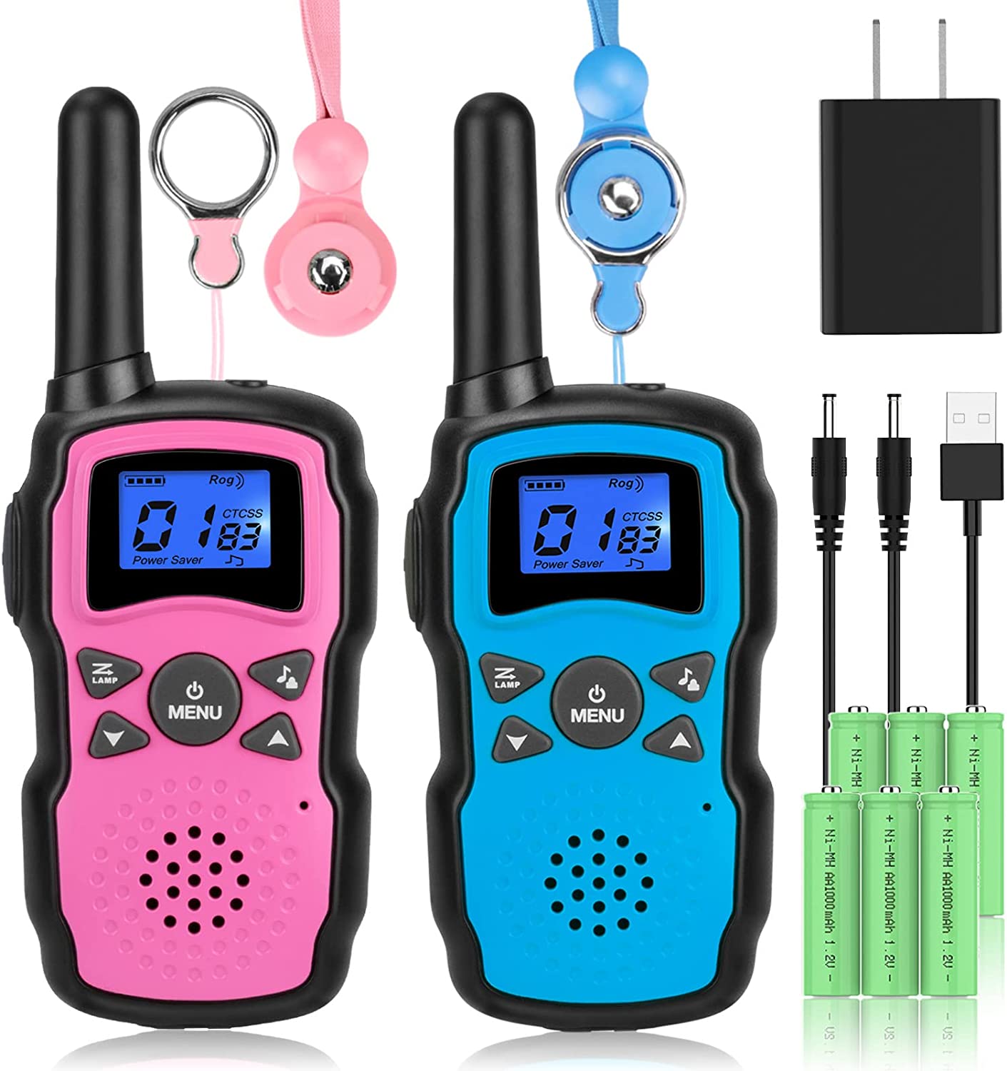 Wishouse Walkie Talkies for Kids Rechargeable with USB Charger 6000mAh Battery,Outdoor Camping Games with Flashlight Lanyard,Toys for Girls,Halloween Xmas Birthday Gift for Children 2 Pack Pink Purple