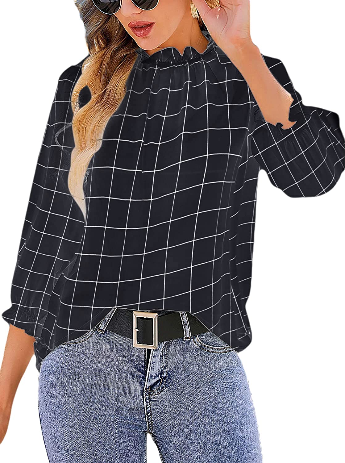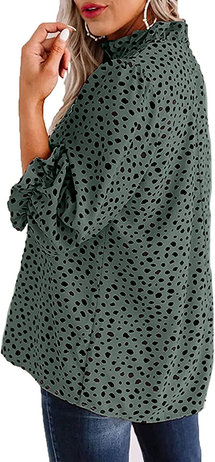 Avanova Women's Leopard Printed Ruffle Hem Long Sleeve Mock Neck Blouses Top
